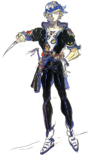 Locke has a good sense of humor and a penchant for banter, usually at his friend Edgar, the King of Figaro's expense. In addition, he is eager to protect and while he might have some… unsavory hobbies, he is always willing to step up and help someone, especially young, supposedly defenseless women. This may outwardly appear to be something of the mark of a womanizer, but that’s Edgar’s thing. Locke carries the deep guilt of having lost his girlfriend, Rachel. She became amnesiac after protecting him from a bridge collapse and, with influence from her family who did not approve of Locke and blamed him, drove him away. He later returned to find out she had died in an Imperial attack, having regained her memories just before her death and uttering his name.